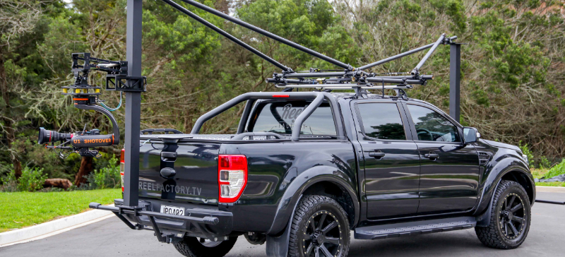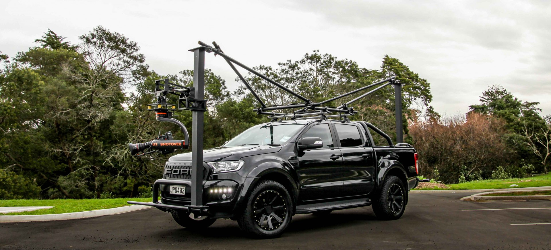 The Ford Ranger camera car is built legally for any road and all terrain use. The stabilisation system is bought to you by SHOTOVER with the G1 attached to the latest Flowcine Blackarm. This set up can be legally driven anywhere around New Zealand without the need for road closure or pilot vehicles for filming purposes. This set up has been utilised on beaches, farms and 4WD tracks.